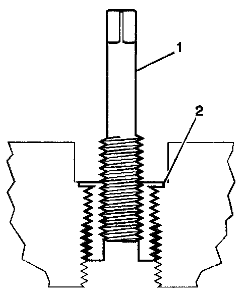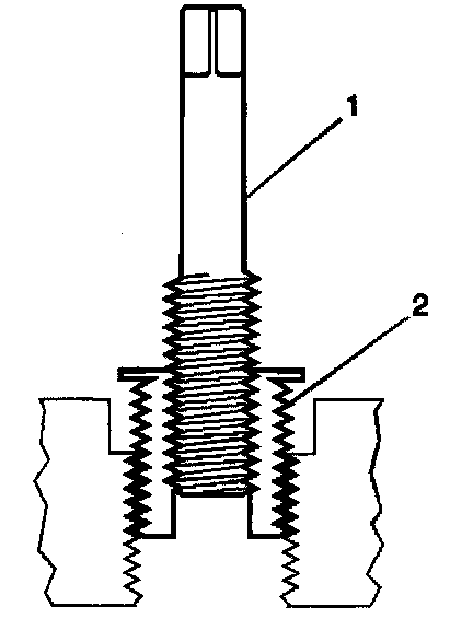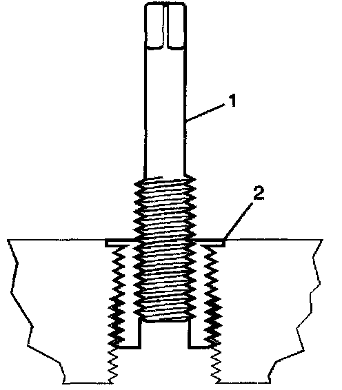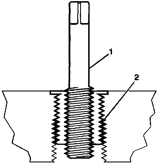 14. Inspect the insert (1) for proper installation (2) into the tapped hole.