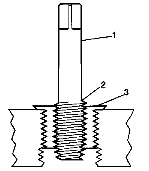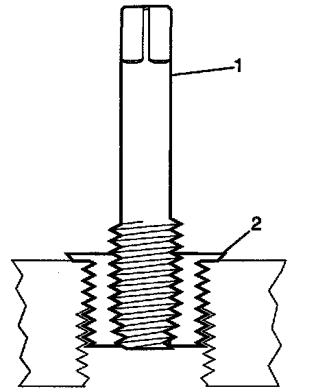 4. Tap the drilled hole until the threads at the top of the tap (2) are down to the surface of the base material.