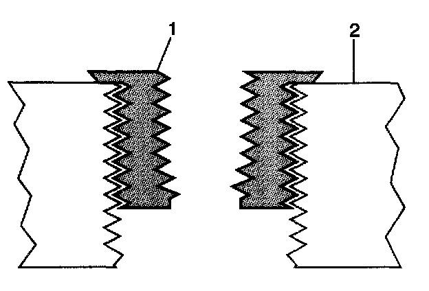 14. Inspect the insert (1) for proper installation (2) into the tapped hole.