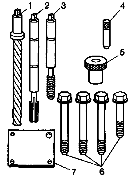 ^ Do Not remove the fixture plate prior to installing the insert with the installation driver. The fixture plate remains in position throughout the thread repair process. The crankshaft main bearing bolt hole required tools consist of the following: