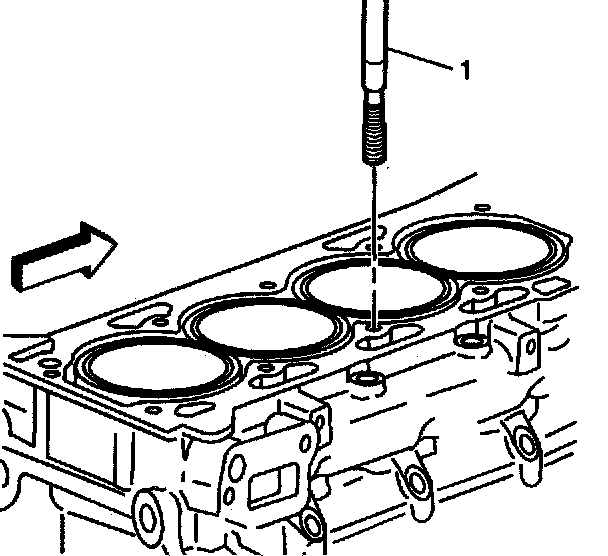 5. Remove the alignment pin (1) from the cylinder head bolt hole.