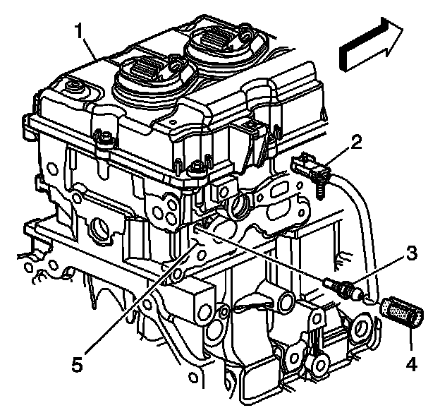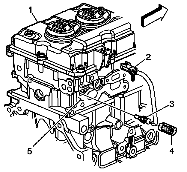 3. Using the J 45861 (4) carefully remove the ECT sensor (3) from the cylinder head (5).