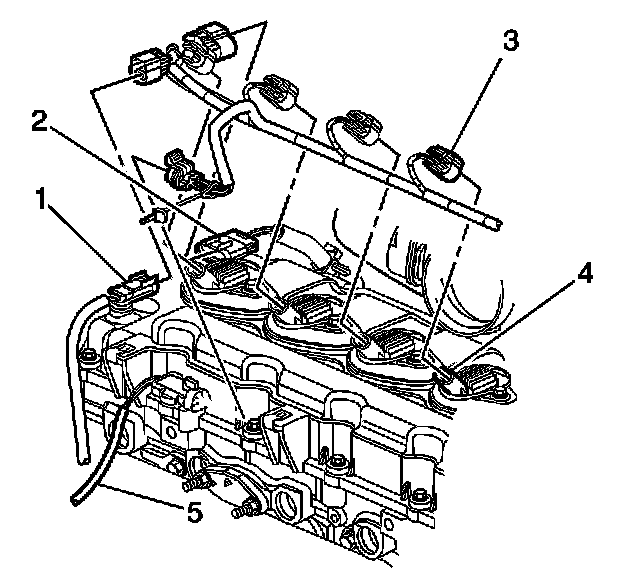 1. Disconnect the heated oxygen sensor (HO2S) electrical connector (5) from the following: