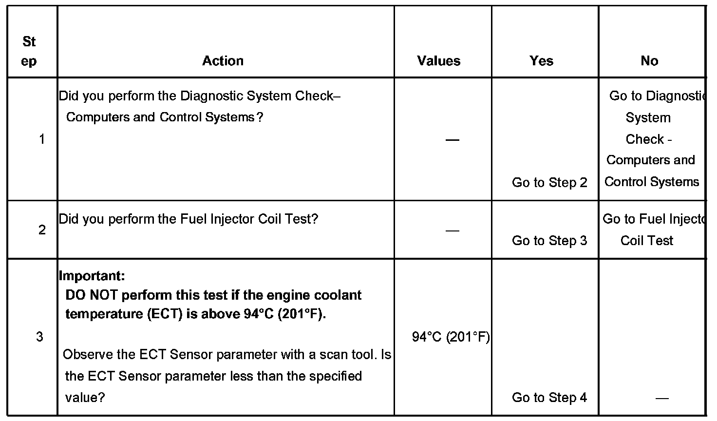 3. The engine coolant temperature (ECT) must be below the operating temperature in order to avoid irregular fuel pressure readings due to hot soak fuel boiling.