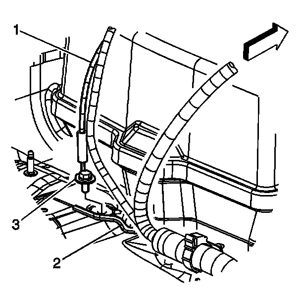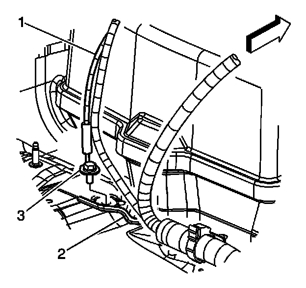 2. Remove the bolt (3) securing the battery negative cable (1) to the battery tray (2).