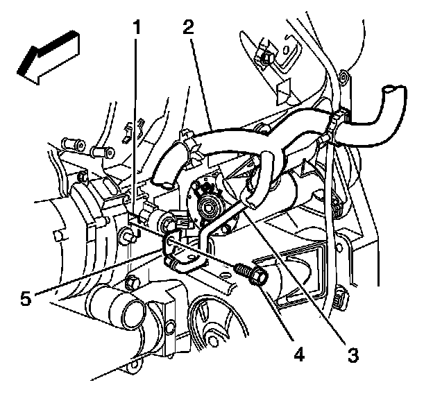 7. Remove the bolt (4) securing the battery negative cable (3) to the engine block (1).