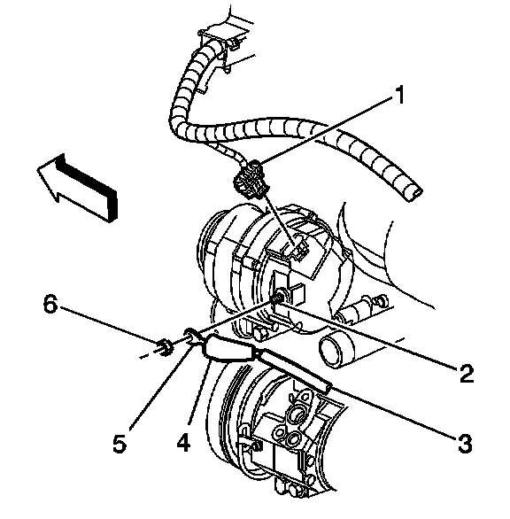 4. Connect the generator lead (5) to the generator and install the generator output BAT terminal nut (6).