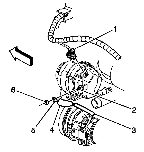 6. Disengage the A/C compressor electrical connector from the bracket.