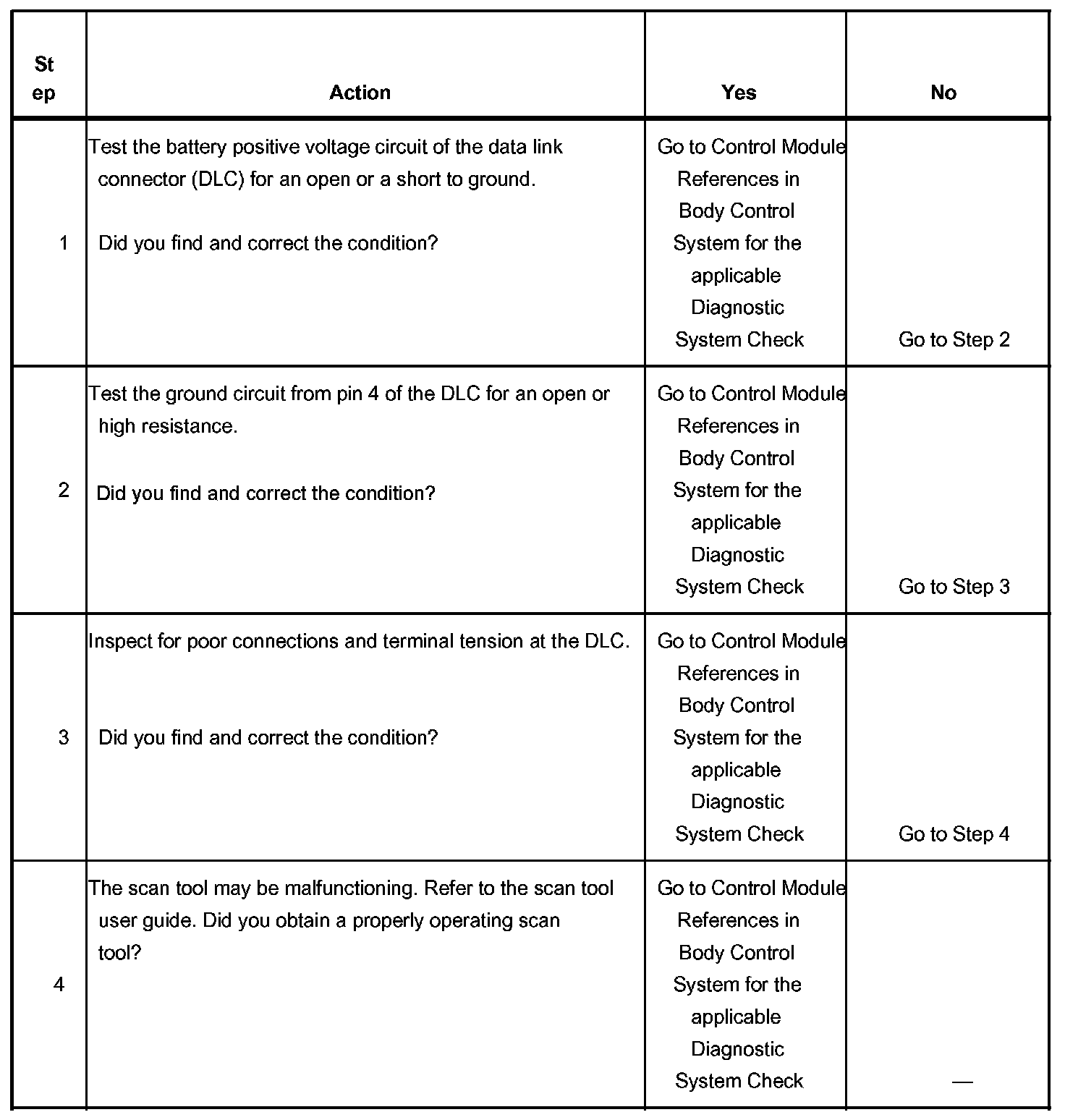 4. If the battery positive voltage and ground circuits of the DLC are functioning properly. The malfunction must be due to the scan tool.