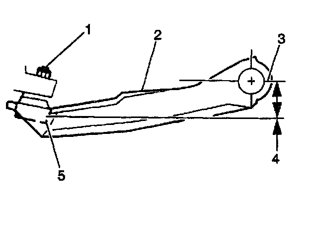 3. Measure from the pivot bolt center line (3) down to the lower corner (5) of the lower ball joint (1) in order to obtain the Z height measurement (4).
