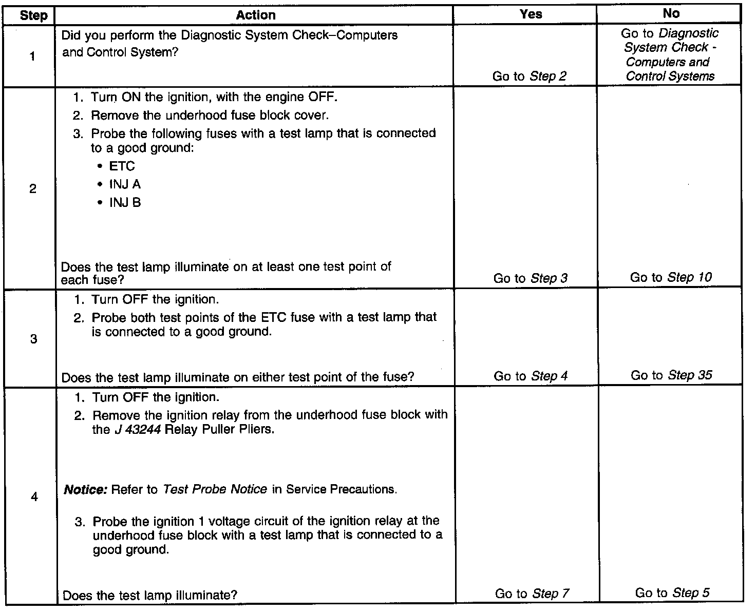 If the ignition relay fails to close, the engine will crank, but will not run. The class 2 communications will be available with the use of a scan tool.