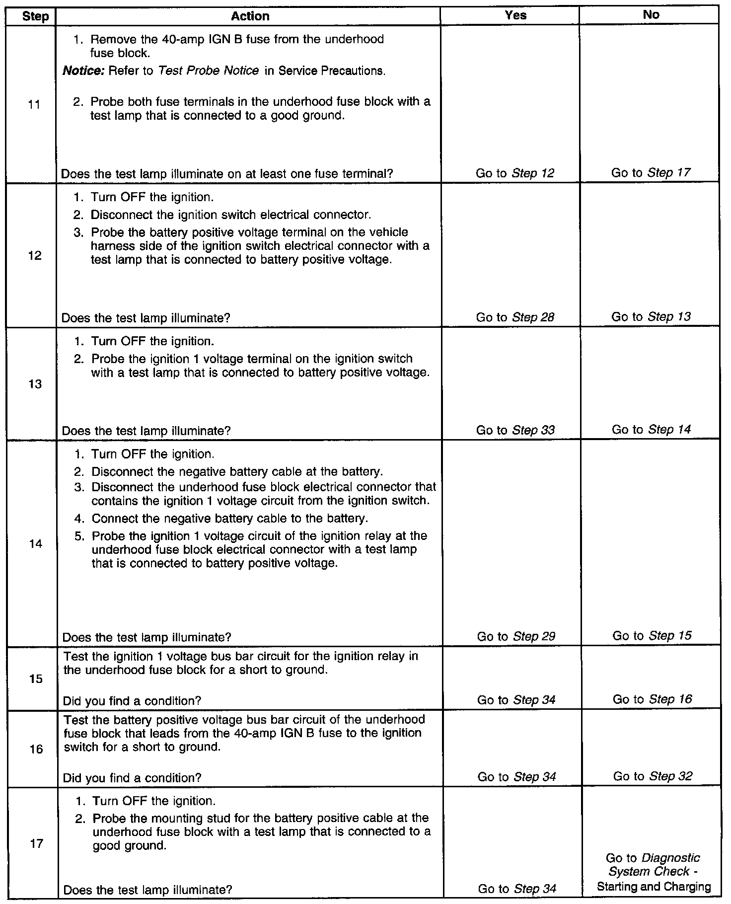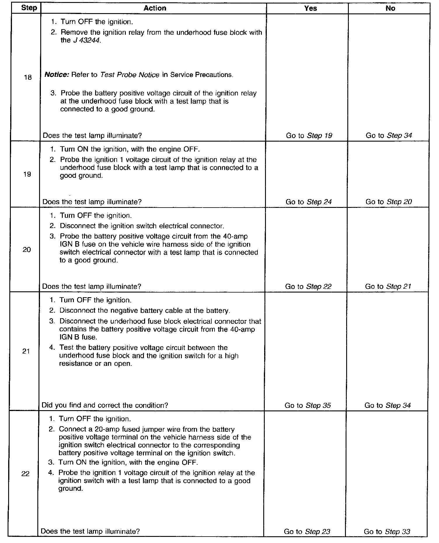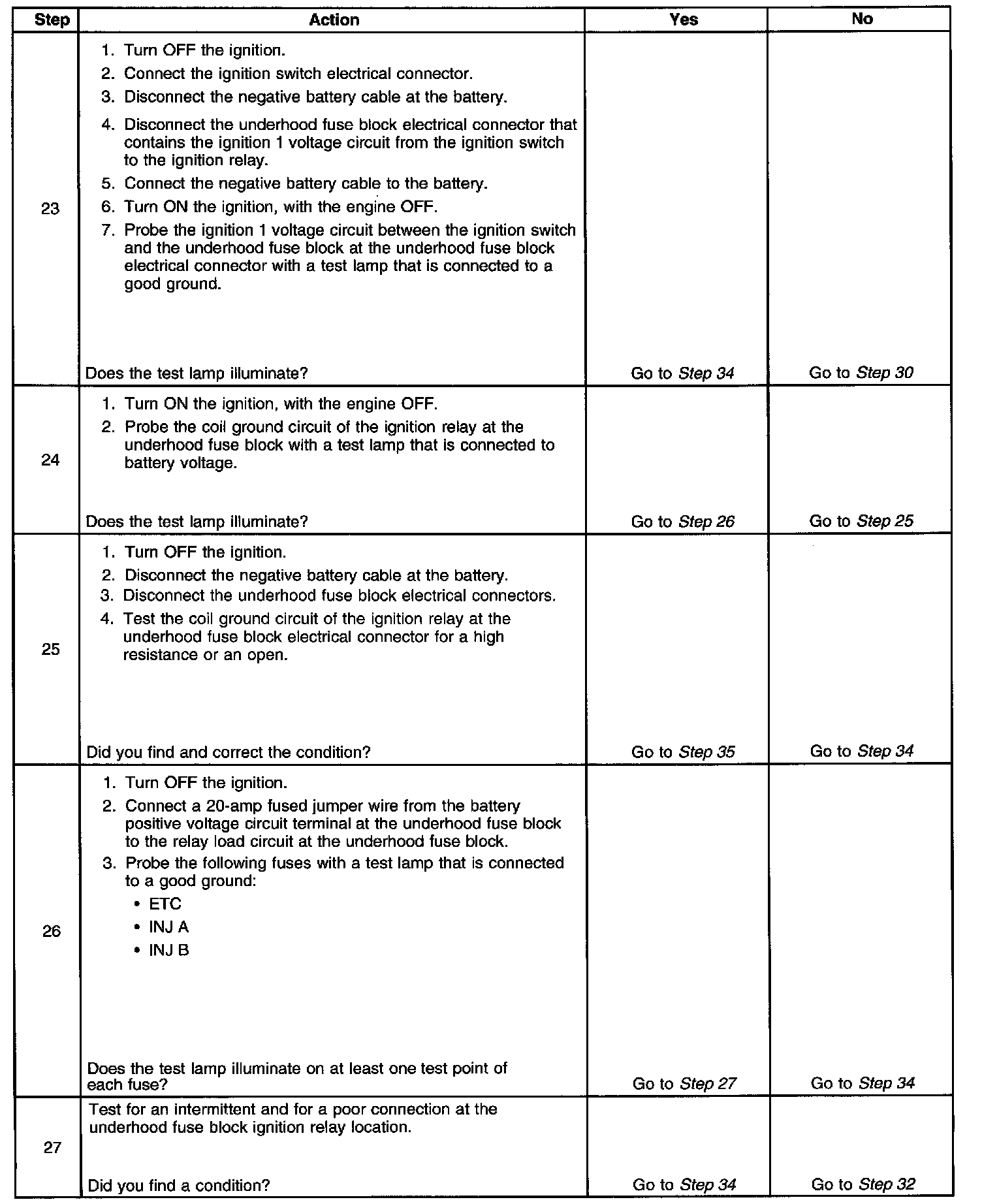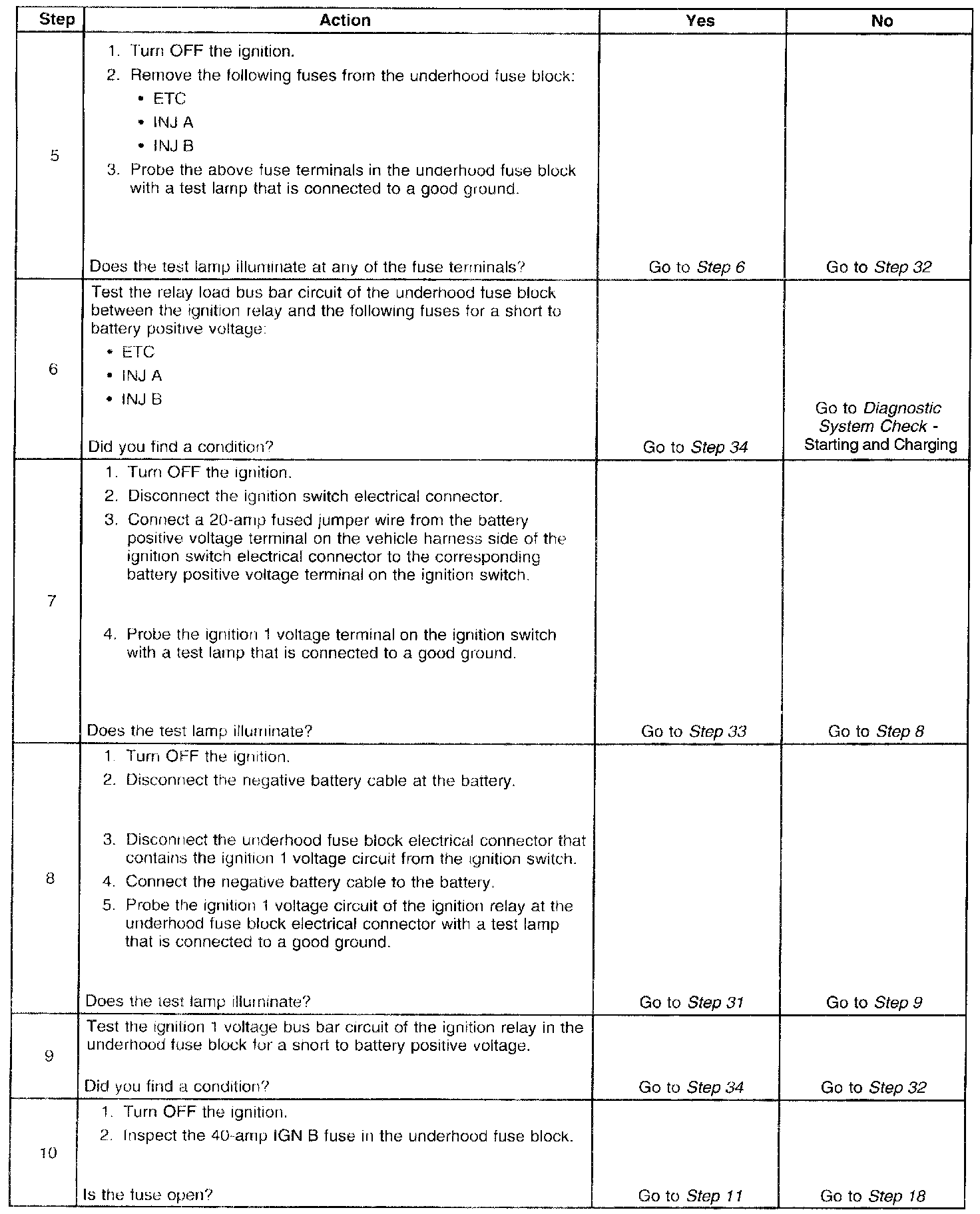 The ignition relay table assumes that the vehicle battery is fully charged.