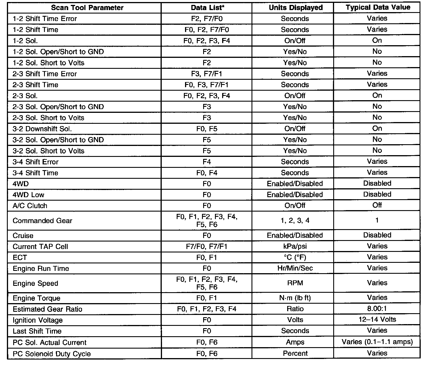 Transmission Scan Tool Data List (4.2L)Use the scan tool data list under the following conditions: