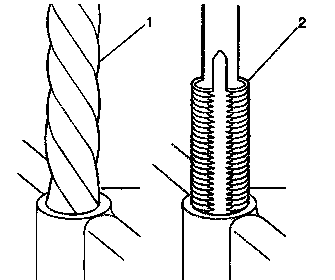 Important: The use of a cutting type fluid GM P/N 1052864 (Canadian P/N 992881), WD 40, or equivalent is recommended when performing the drilling, counterboring, and tapping procedures.