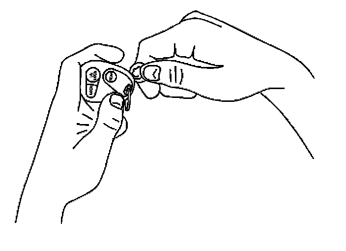 1. Insert a small coin between the 2 halves of the transmitter case at the slot provided near the key ring hole.