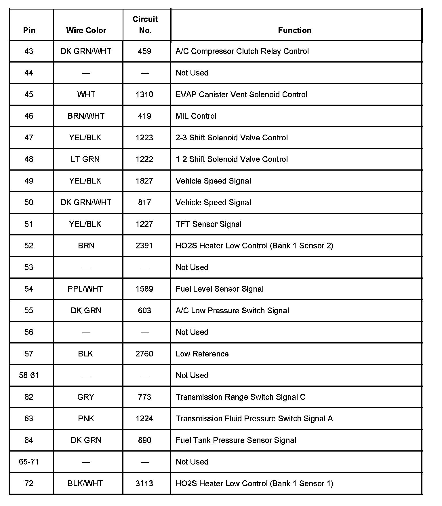 Powertrain Control Module (PCM) Connector C2