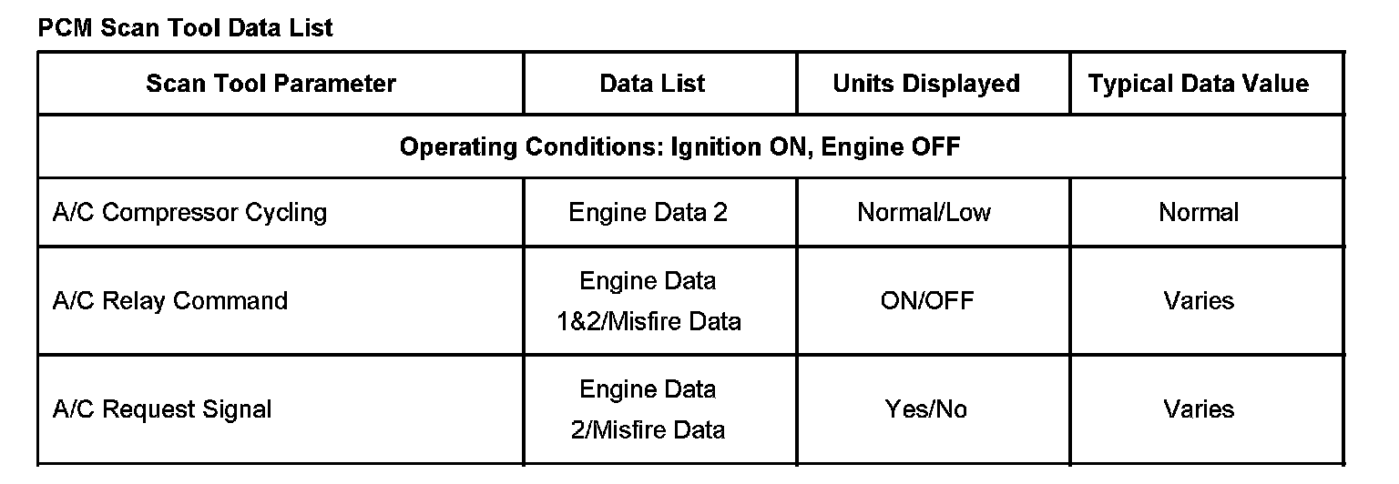 Scan Tool Data List - Powertrain Control Module (PCM)