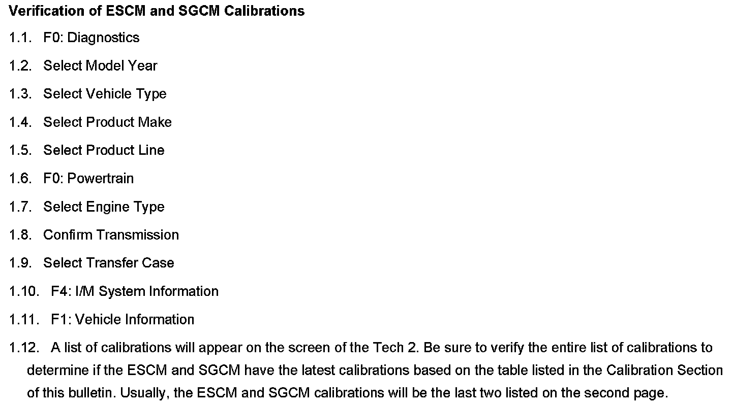 1. BEFORE REPLACING ANY MODULES, use the steps to verify that the ESCM and SGCM contain the latest software calibration.