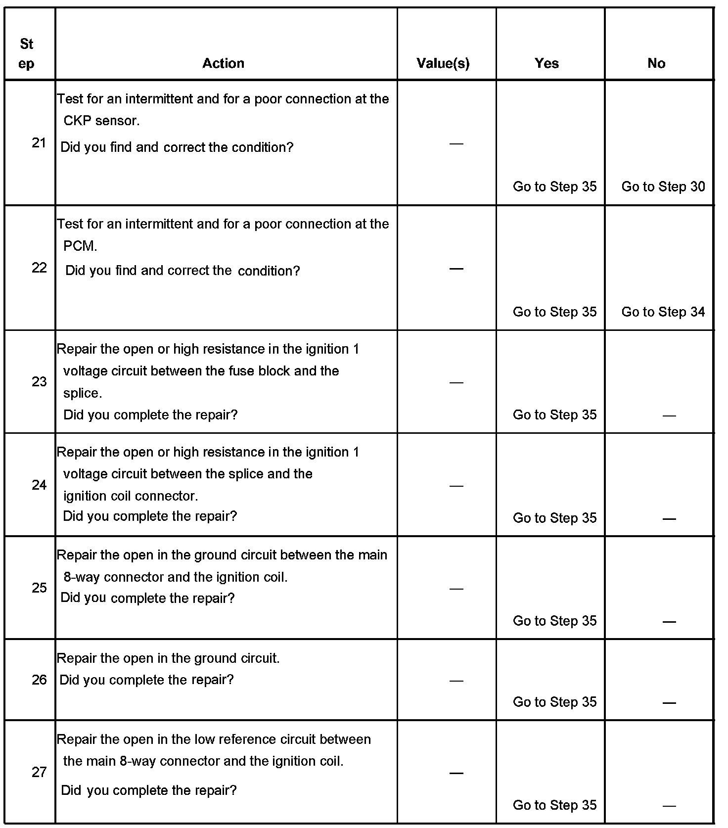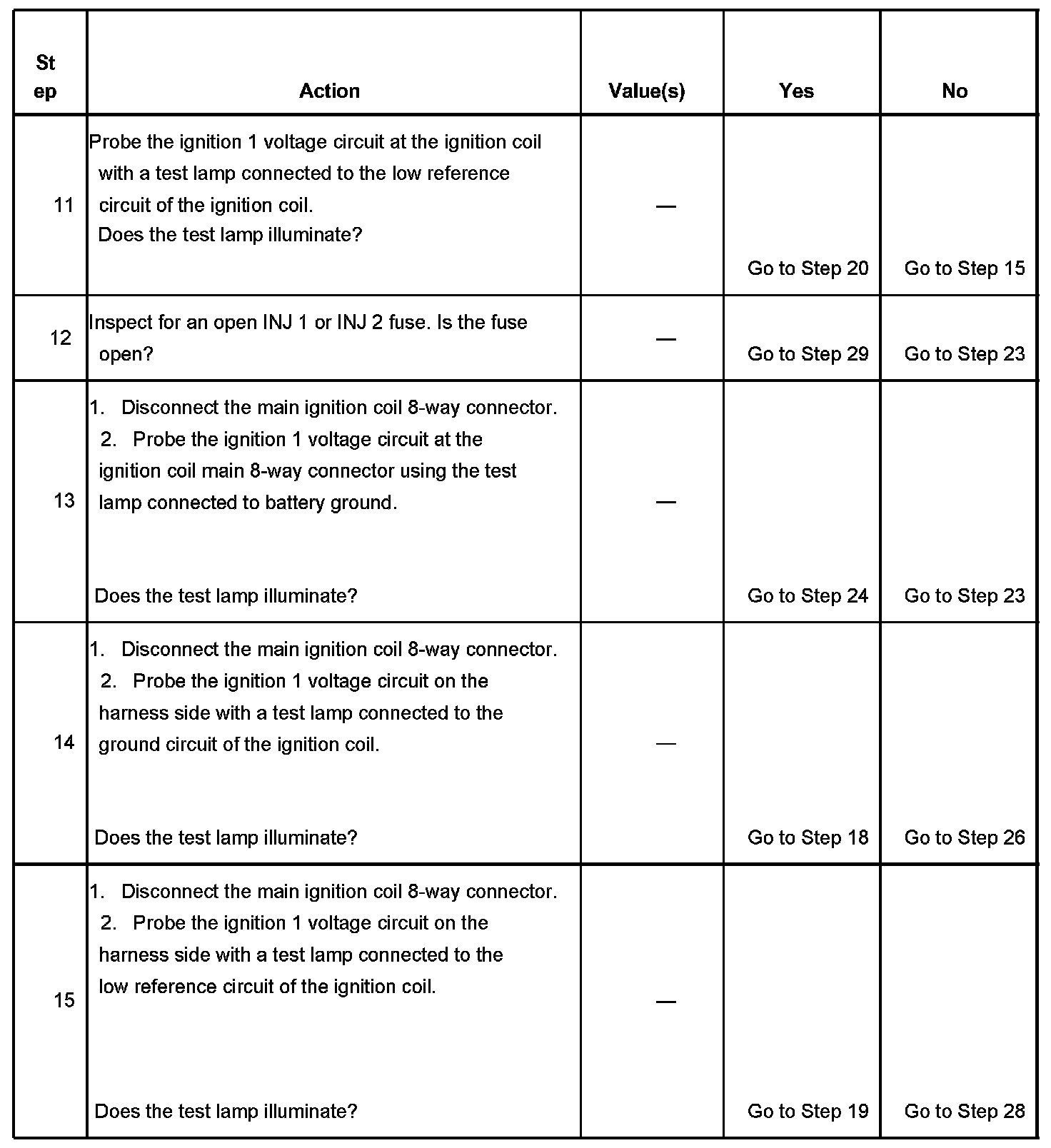 12. A good indication that the fuse is open is all off the misfire current counters are incrementing on one side of the engine. Inspect the ignition positive voltage circuit for a grounded circuit. If the fuse is open and the ignition coil circuits are OK, inspect the injector circuits for being grounded.
