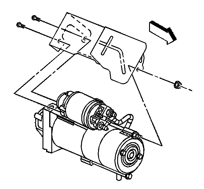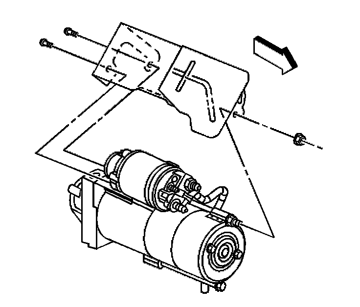 1. Install the starter heat shield, nut and bolts, if necessary.