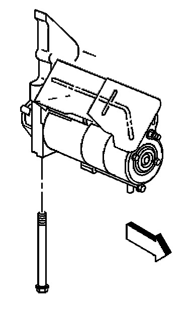 9. Remove the starter heat shield bolts, nut, and shield, if necessary.