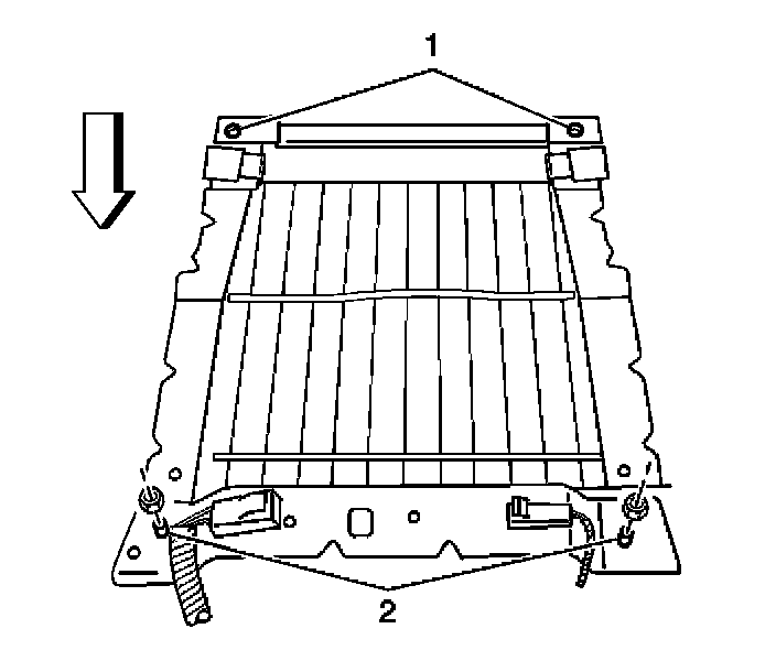 5. Remove the pressure sensor (2) from the front passenger seat frame, if equipped with the Inflatable Restraint Passenger Presence System.