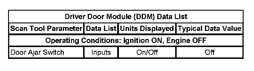 Scan Tool Data List - Driver Door Module (DDM)