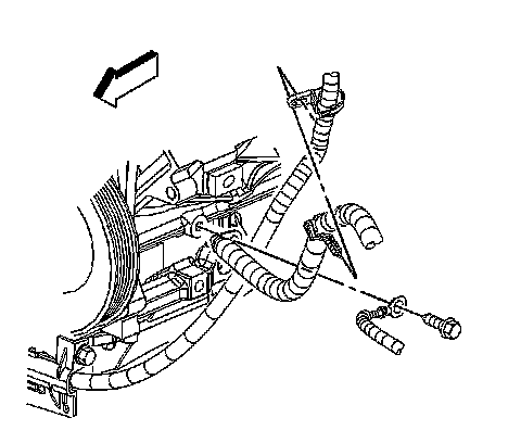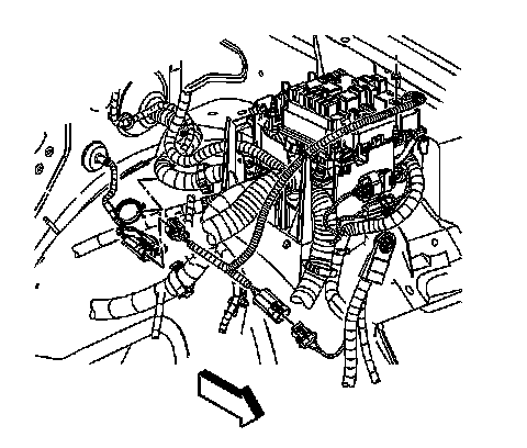 9. Remove the engine wiring harness ground/negative cable bolt.