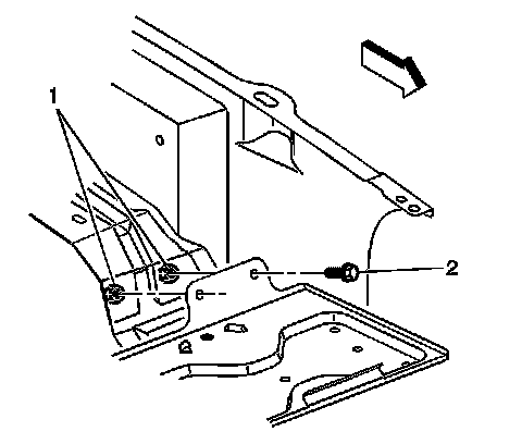 2. Install the bolts (2) to the battery tray reinforcement until snug.