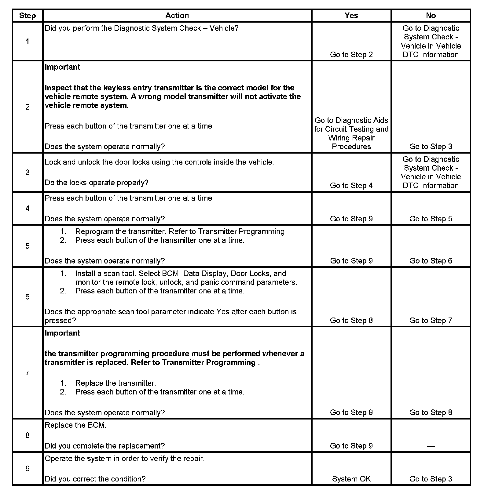 Keyless Entry System Inoperative
