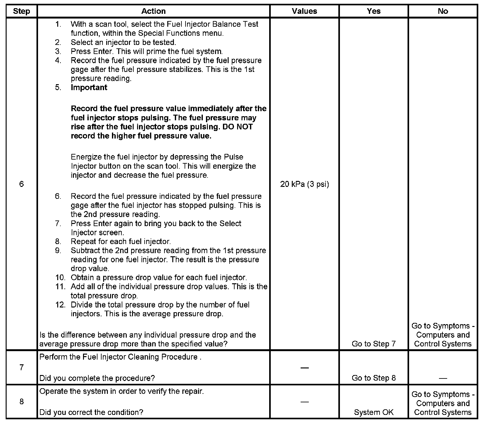 Fuel Injector Balance Test Example (Actual Results May Vary):