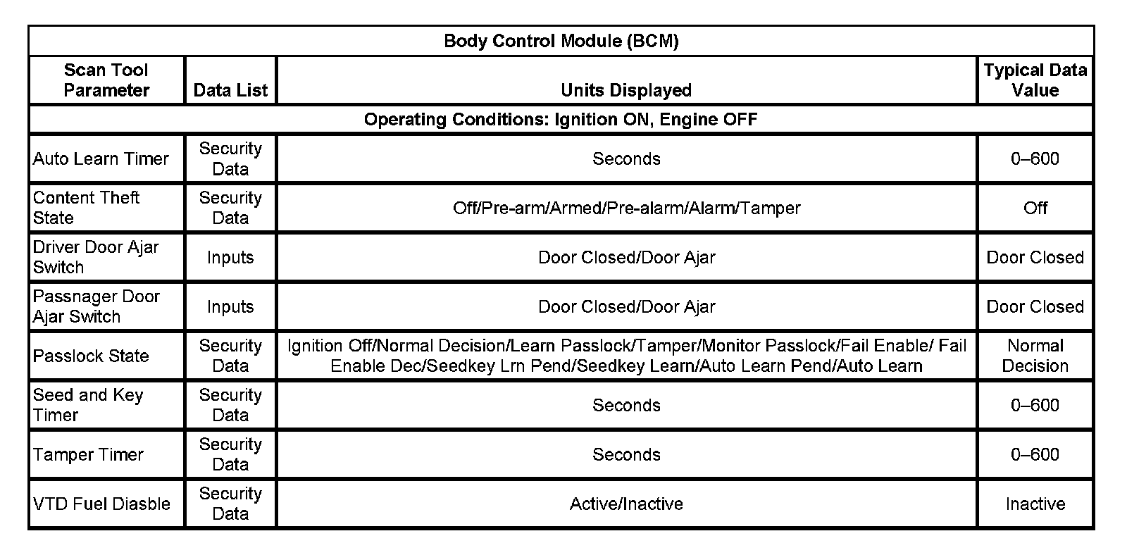 Body Control Module (BCM):