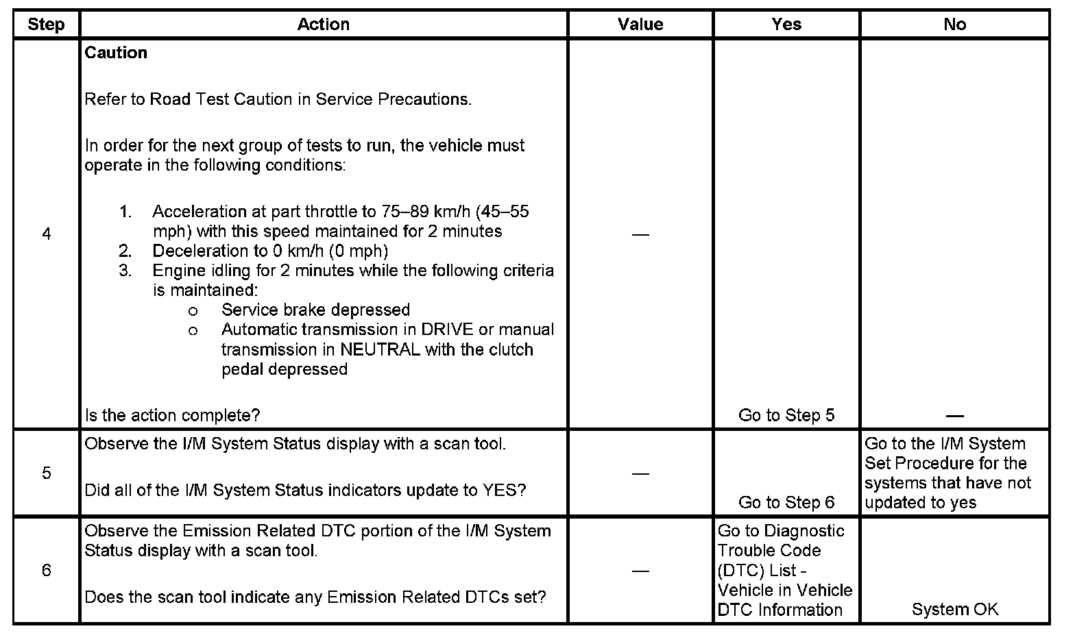 6. The I/M System Status only reports on whether or not a diagnostic has run, not what the outcome of the test was. If any emission related DTC sets after the tests are complete, the DTC will require diagnosis.