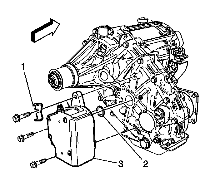 4. Remove the encoder motor (3) and O-ring seal (2) from the transfer case. Discard the O-ring seal (2).