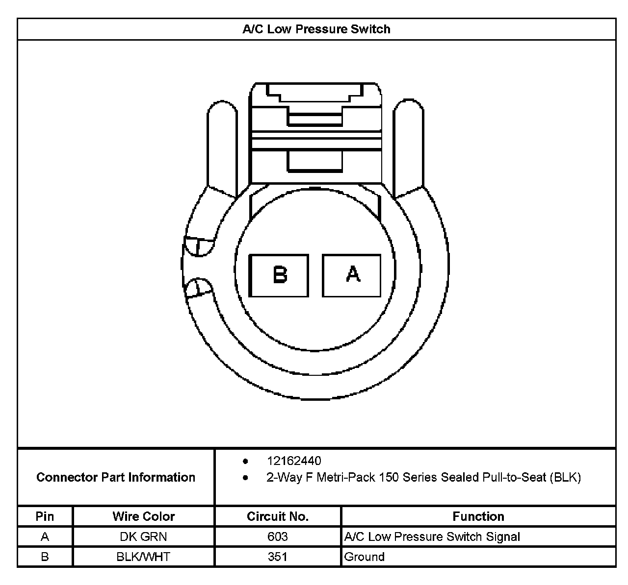 A/C Low Pressure Switch: