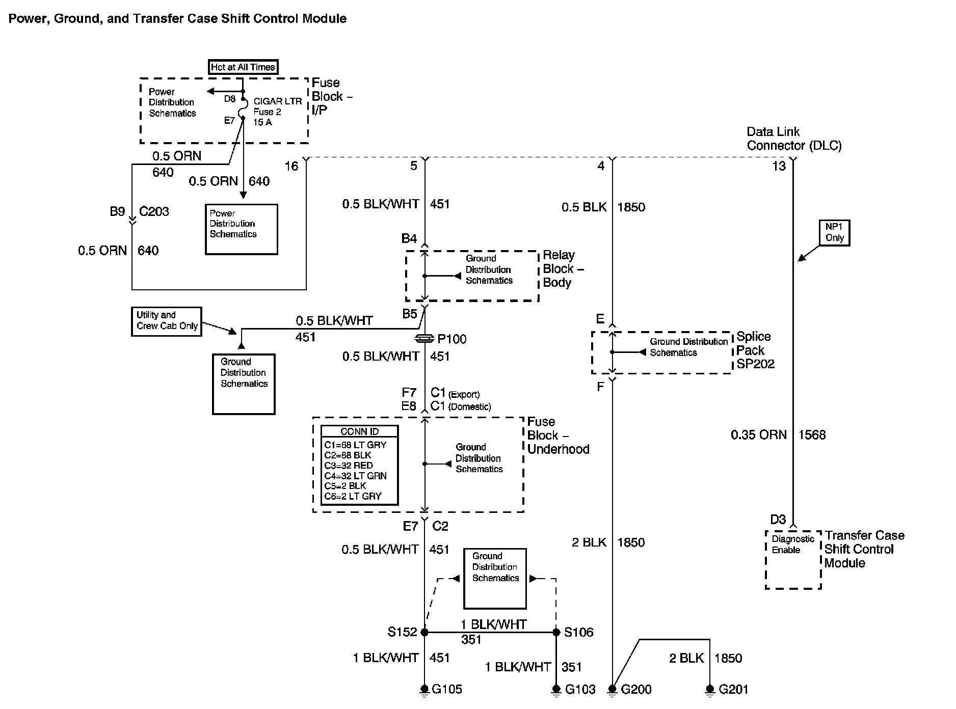 Location: The locations for the Connectors, Grounds, Splices, and grommets shown within these diagrams can be found via their numbers at vehicle locations. Locations