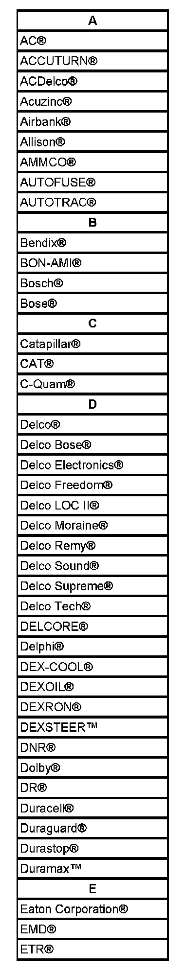 Listed are Registered Trademarks ((R)) or Non-Registered Trademarks ((TM)) which may appear in this service data.