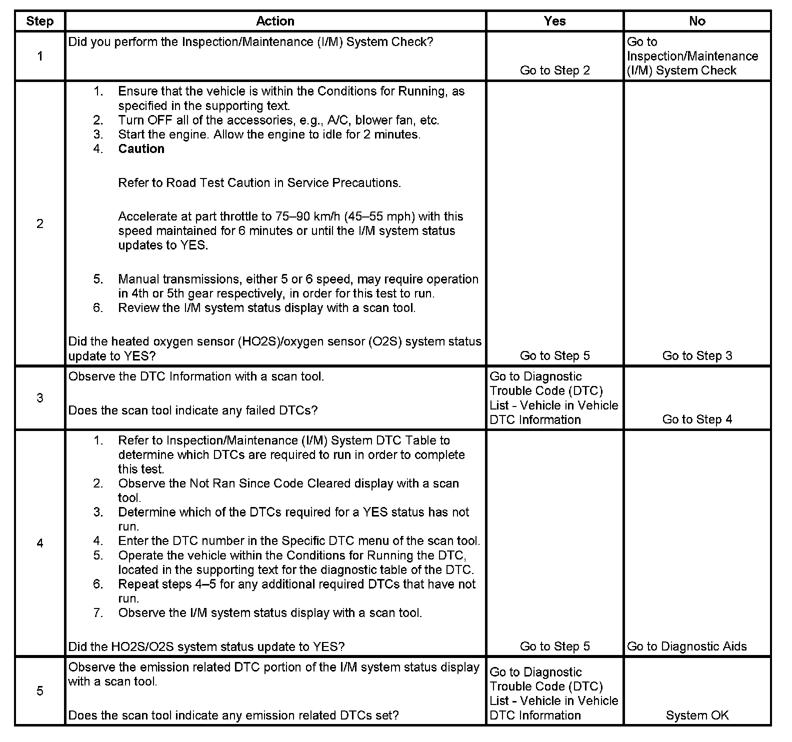 The purpose of this test is to satisfy the enable criteria necessary to execute inspection/maintenance (I/M) readiness diagnostics for the heated oxygen sensor (HO2S)/oxygen sensor (O2S) system. The test may be used to set the I/M system status to YES.