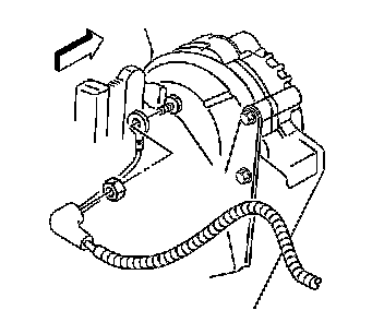 4. Remove the nut retaining the positive battery cable to the generator.
