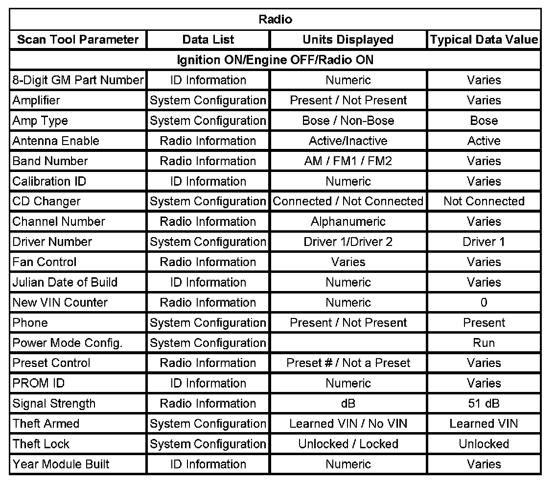 Scan Tool Data List