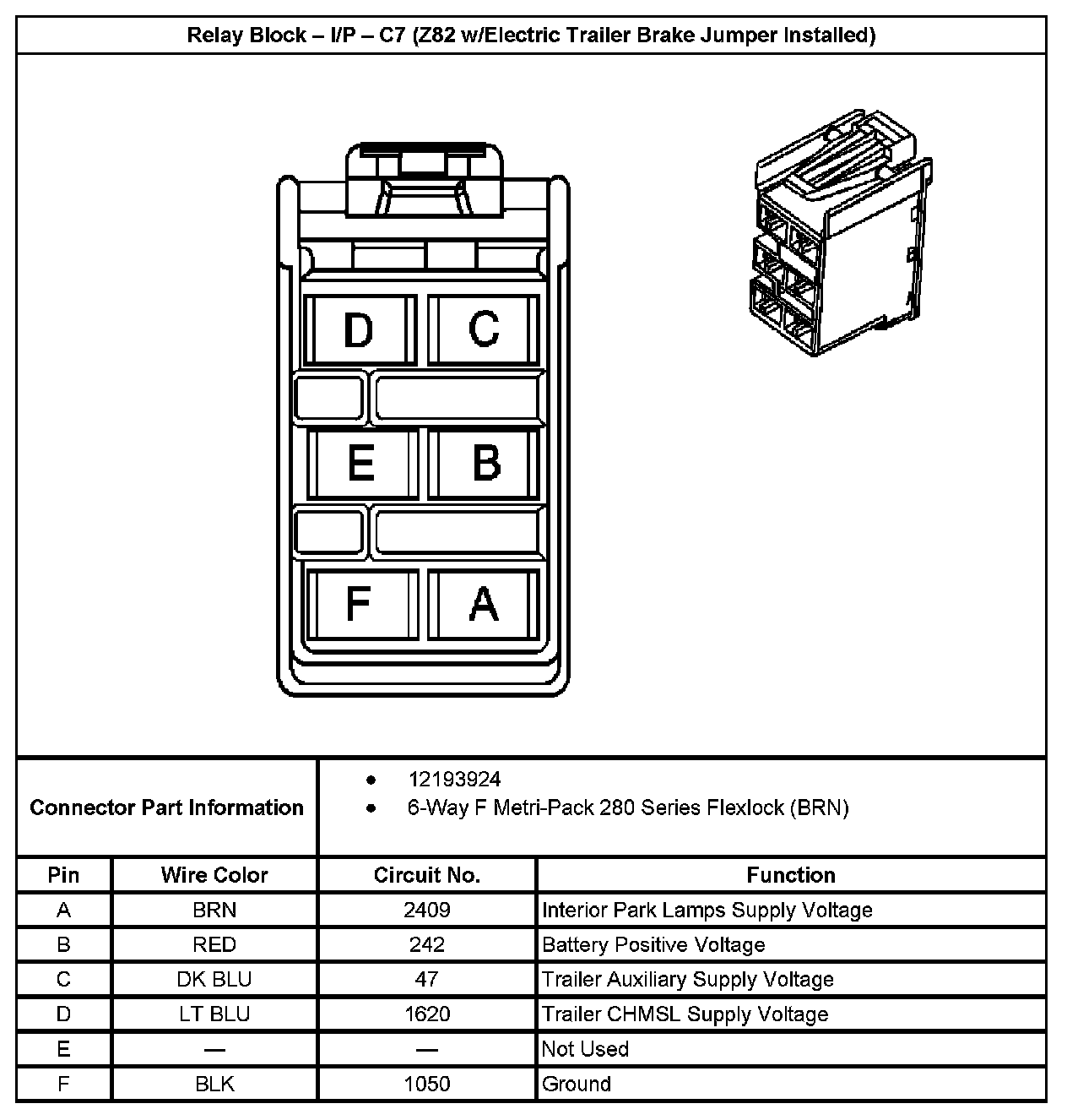 Relay Block - I/P - C7 (With RPO Code Z82 W/Electric Trailer Brake Jumper Installed):