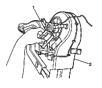 2. Disconnect the electrical connector from the auxiliary blower motor processor (1).