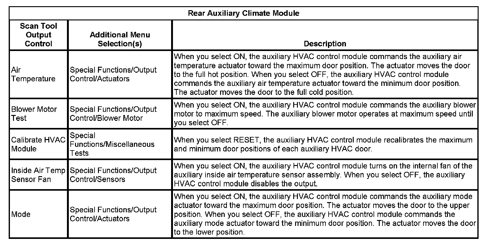 Rear Auxiliary Climate Module:
