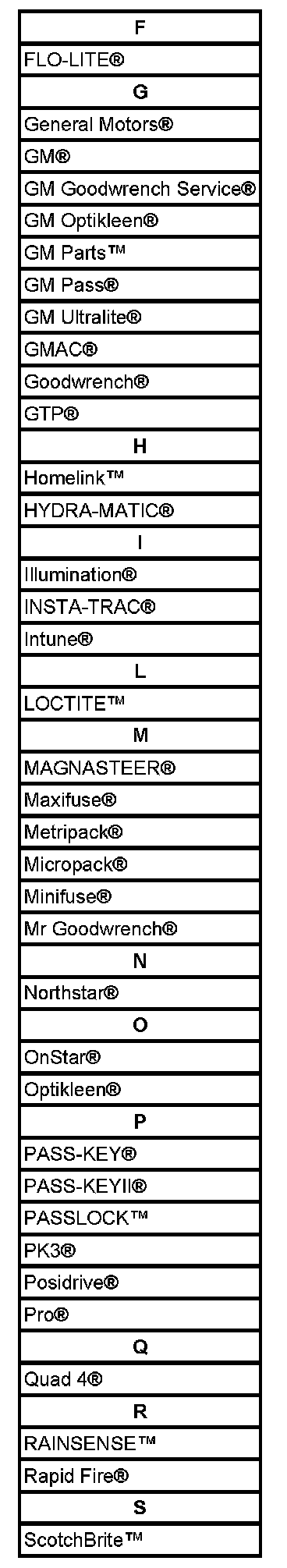 Listed are Registered Trademarks ((R)) or Non-Registered Trademarks ((TM)) which may appear in this service data.