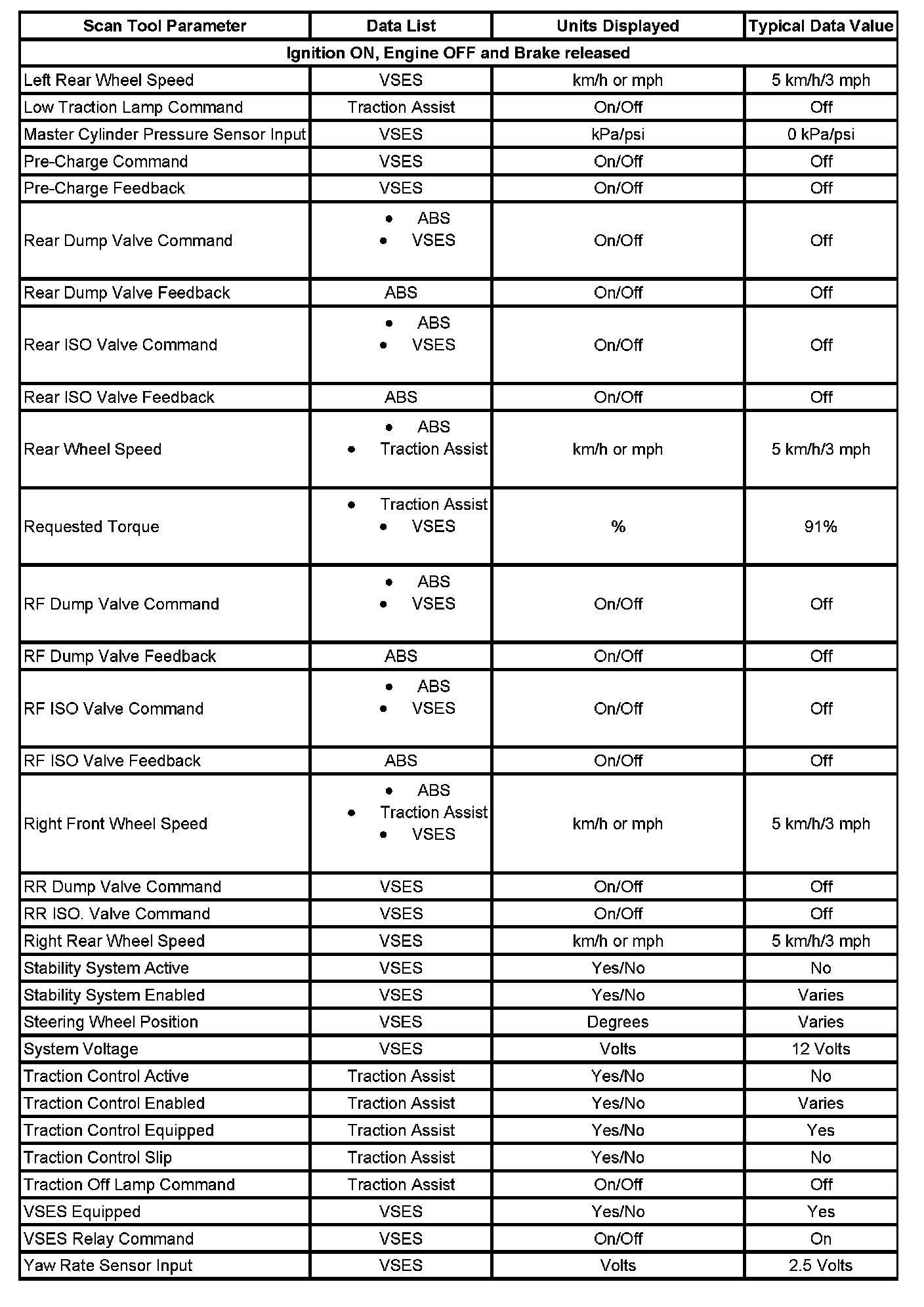 Scan Tool Data List