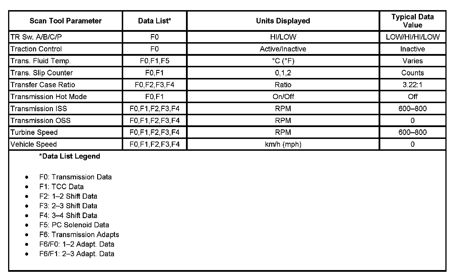 Only the parameters listed below are used in this manual for diagnosing. If a scan tool displays other parameters, the values are not recommended by General Motors for use in diagnosis.