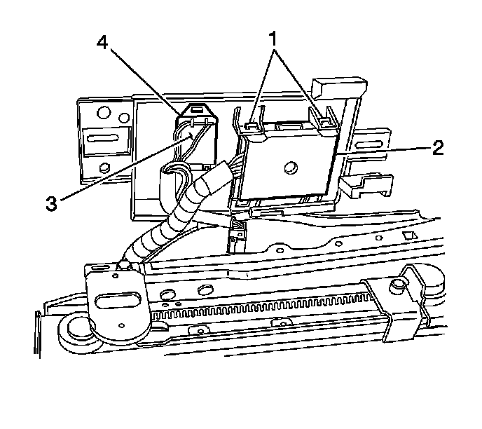 4. Release the tabs (1) that retain the seat switch (2) to the seat bezel.