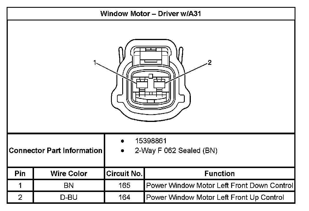 Window Motor - Driver With RPO Code A31: