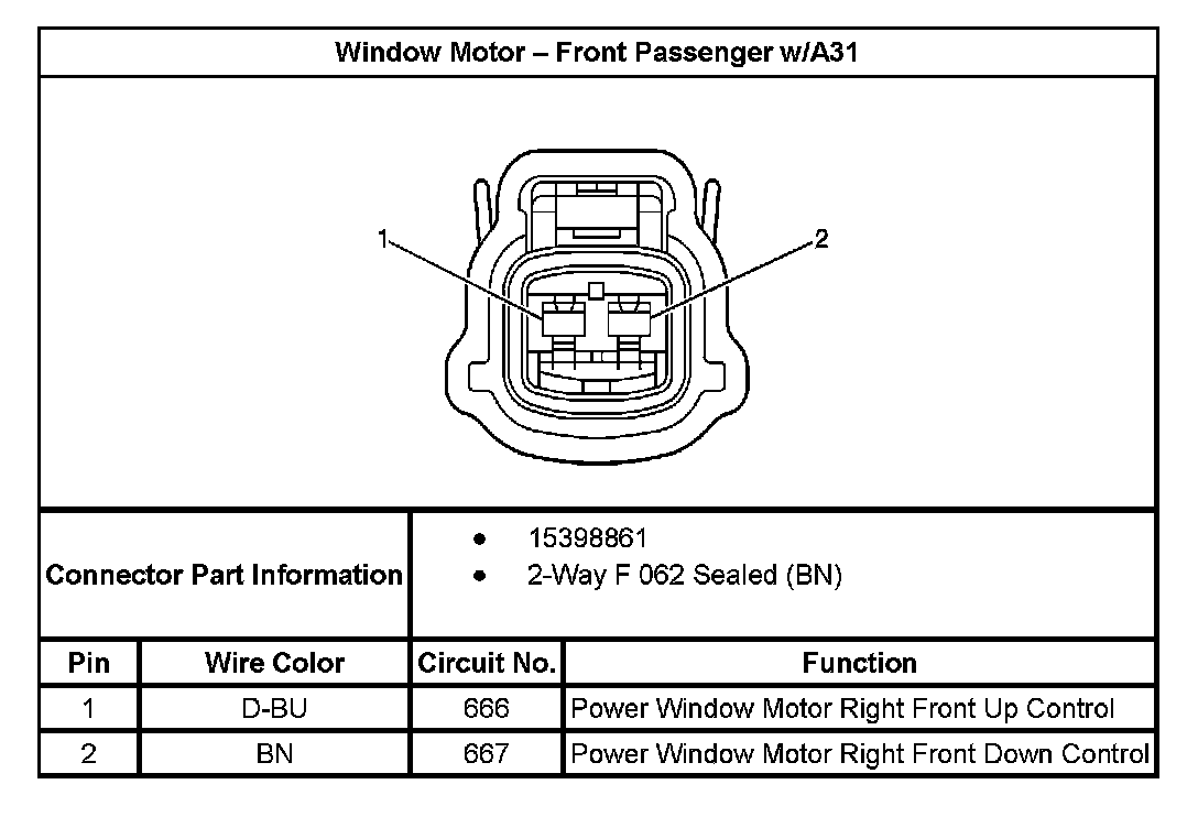Window Motor - Front Passenger With RPO Code A31: