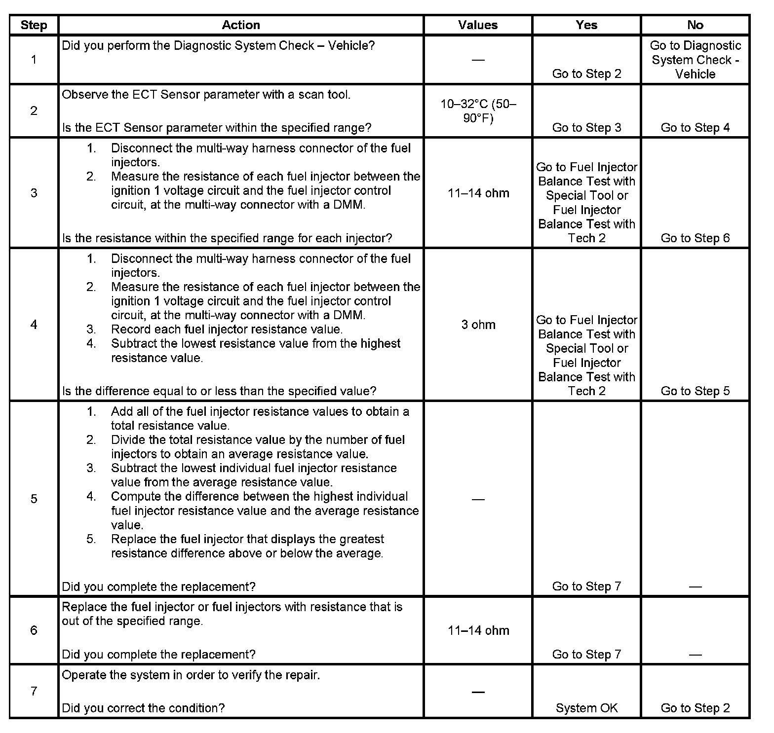 - Perform the fuel injector coil test within the conditions of the customer's concern. A fuel injector condition may only be apparent at a certain temperature, or under certain conditions.